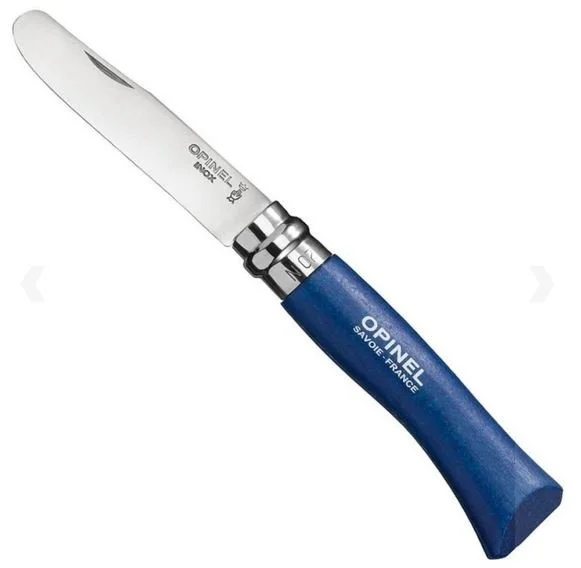 My First Opinel has a rounded tipped end and easy to use safety catch so it is unlikely to fold whilst in use. It’s handle is made of natural wood. With a blade length of 7.5cm it is a perfect first whittling tool or general pen knife. The safety catch can also be used during transport. Utilising Sandvik 12C27 modified stainless steel. Anti-corrosive thanks to the addition of chrome and requires no special maintenance.